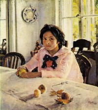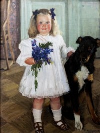 Б.Кустодиев "Портрет дочери Ирины с собакой Шумкой"