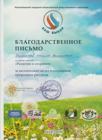 Благодарственное письмо за участие в проекте "Разделяй и сохраняй"