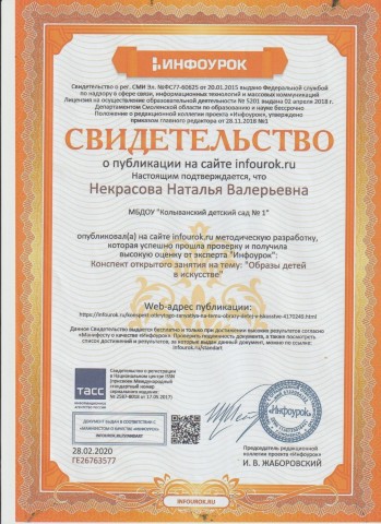Свидетельство о публикации на сайте infourok.ru
