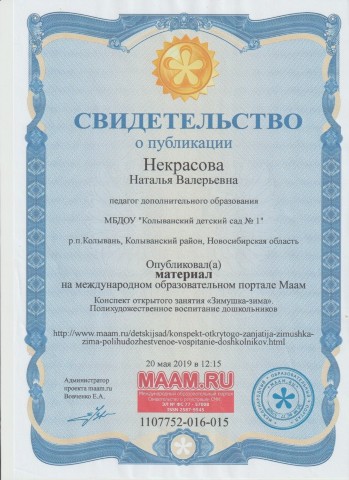Свидетельство о публикации на международном образовательном портале Маам