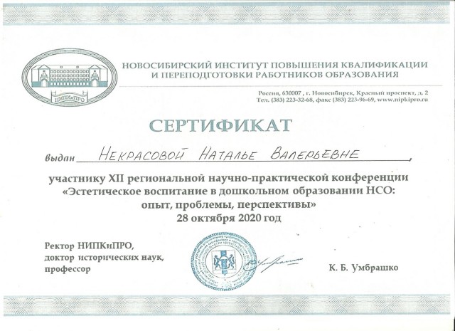 Сертификат НИПКиПРО за участие в конференции |