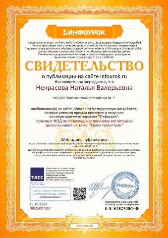 Свидетельство о публикации на сайте infourok.ru |