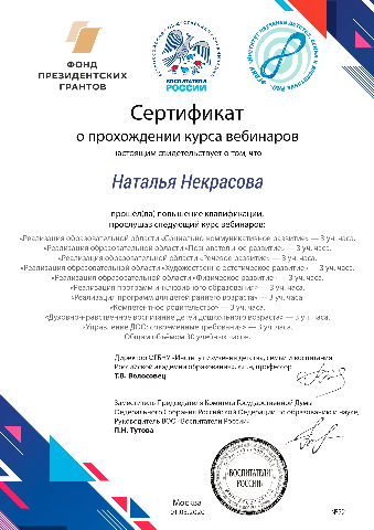 Сертификат о прохождении курса вебинаров |