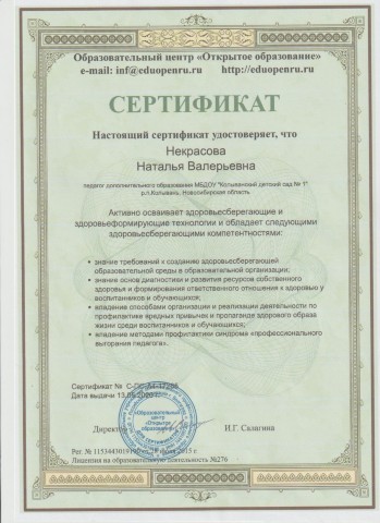 Сертификат активного осваивания здоровьесберегающих и здоровьеформирующих технологий